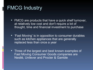 The document provides information about ITC Limited, a leading Indian conglomerate. It discusses ITC's history, products, and market share. ITC was incorporated in 1910 as Imperial Tobacco Company of India Limited and has since diversified into various businesses including cigarettes, hotels, packaging, agriculture, food, IT and other FMCG products. It has a market capitalization of over $13 billion and revenue of $3.5 billion. ITC has significant market share in cigarettes, mint candies, hard-boiled candies and other product categories.