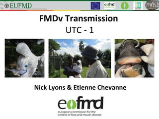 This document discusses the transmission of foot-and-mouth disease virus (FMDv) through multiple avenues. It notes that FMDv is highly contagious due to its low infectious dose, environmental survival, high viral shedding from infected animals, wide host range, transmission prior to clinical signs, and potential for subclinical infections. Modes of transmission include direct contact, exposure to contaminated fomites or aerosols, ingestion of infected animal products, and airborne spread. Peak shedding occurs from ruptured vesicles. Incubation period shedding enhances transmission through animal movements and interactions. Carriers can also transmit the virus for extended periods, though their role in transmission is uncertain.