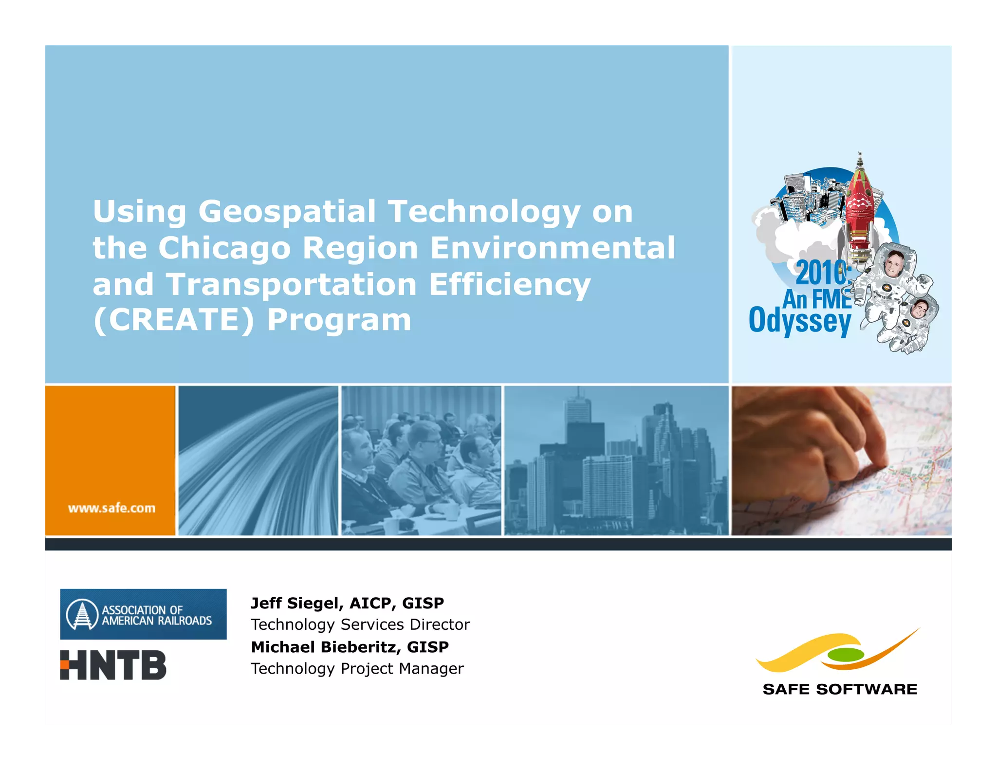 The document details the CREATE program, focusing on utilizing geospatial technology to enhance transportation efficiency and rail infrastructure in the Chicago region. It outlines objectives, methodologies, and deliverables, including the integration of LIDAR technology for data accuracy and reduced costs compared to traditional surveying methods. Additionally, it discusses the implementation of a spatial portal for data extraction and user access to various data formats.