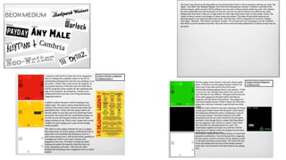 This document summarizes Tom Batty's development diary for his first 6 weeks of work on a graphic design FMP (Final Major Project). Some key details: