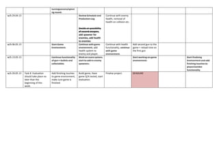 This document outlines the schedule for a student's final major project to create a games design for their BTEC Level 3 Extended Diploma in Creative Media Production. The schedule spans from February 6th to May 20th and includes tasks such as research, pitching an idea, starting game production, adding functionality like health systems and weapons, finishing the environment, and completing the project by the deadline.