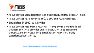 Focus Softnet, established in 1992 and headquartered in Hyderabad, India, is a multinational software company generating $21.1 million in revenue with over 793 employees. The company specializes in ERP software solutions, including the Focus 9 accounting software, which integrates various business functions to enhance operational efficiency. Serving over 30,000 clients across 17 countries, Focus Softnet offers a range of features for financial and resource management while being accessible on various devices.