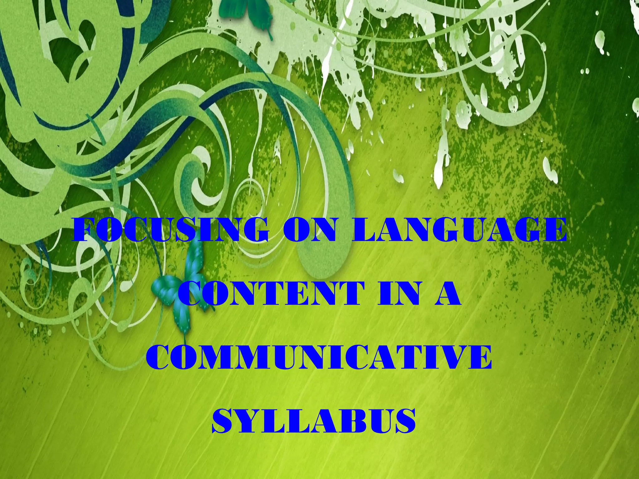 3) Both discrete and holistic views are needed, as are accuracy and fluency. Various models are proposed to integrate these elements in a communicative syllabus.