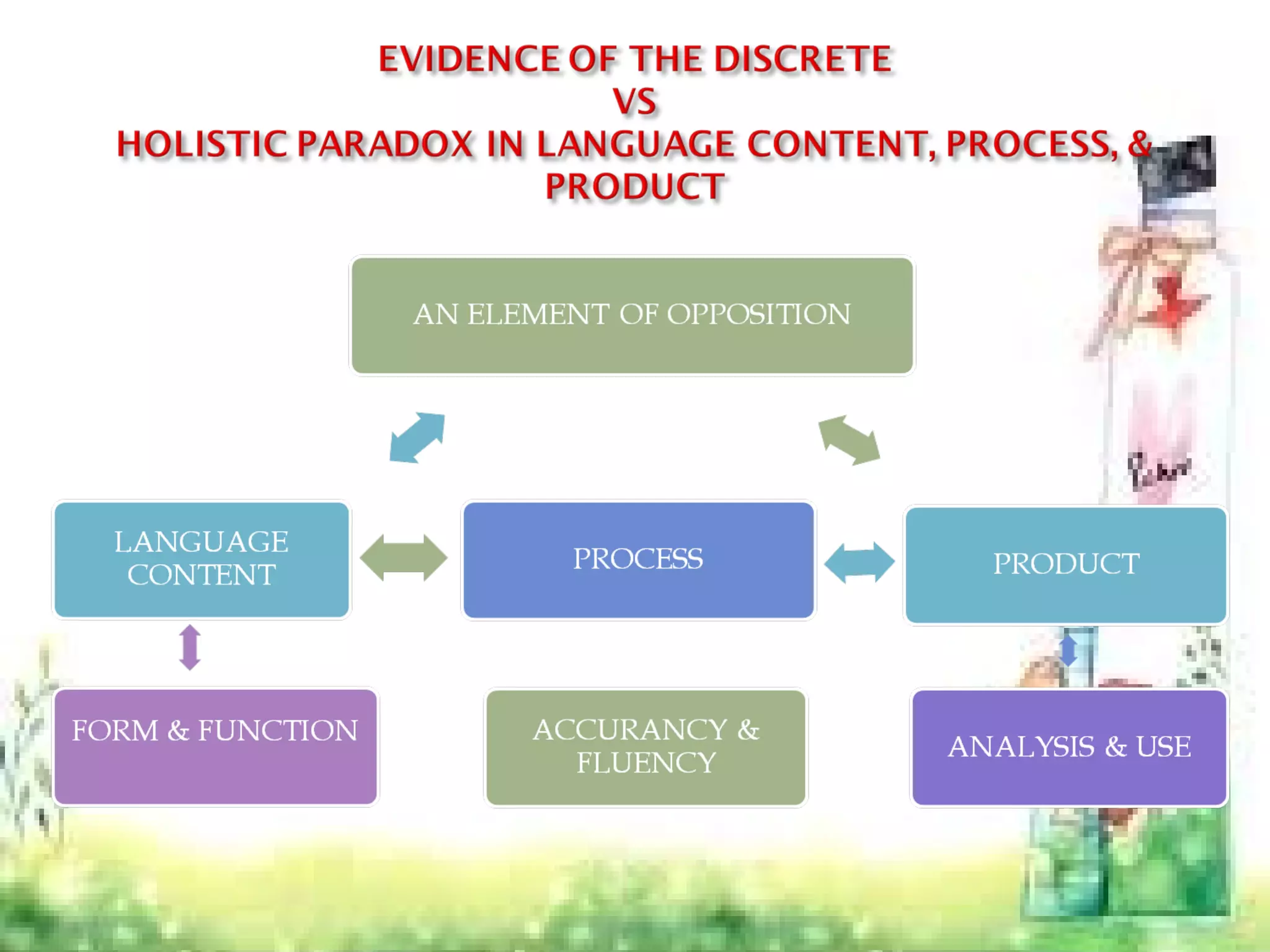 This document discusses approaches to developing language course content and syllabi. It addresses the tension between discrete and holistic views of language. The key points are: