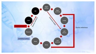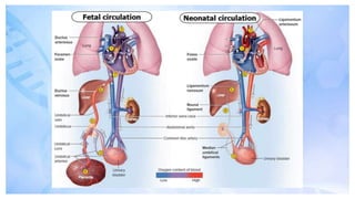 Foetal circulation refers to the movement of oxygenated and deoxygenated blood within a fetus, primarily through the placenta which connects the fetus to the mother's uterus. It involves key structures such as the umbilical cord, ductus venosus, ductus arteriosus, and foramen ovale, enabling the fetus to receive nutrients and oxygen while bypassing non-functional organs like the lungs and liver. After birth, significant changes occur in the circulatory system as these bypasses close, allowing for independent physiological function.