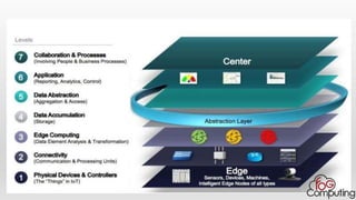The document discusses fog computing, which extends cloud computing capabilities to the edge of networks, addressing the increasing volume of data from connected devices in the Internet of Things (IoT). It outlines existing systems' vulnerabilities, proposes user behavior profiling and a decoy system to enhance security, and highlights the advantages of fog computing, including improved data processing efficiency and business agility. The future scope predicts a significant increase in connected devices, emphasizing the need for decentralized processing to manage the anticipated data overload.