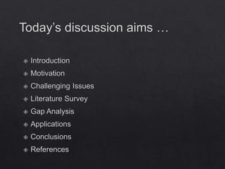 The document discusses fog computing as a necessary evolution beyond cloud computing, addressing limitations such as high latency and security issues. It emphasizes the importance of fog computing for future IoT applications, facilitating local data processing while still leveraging cloud for extensive analysis. Various literature sources are cited to support the significant role of fog in connected environments like smart cities and healthcare.