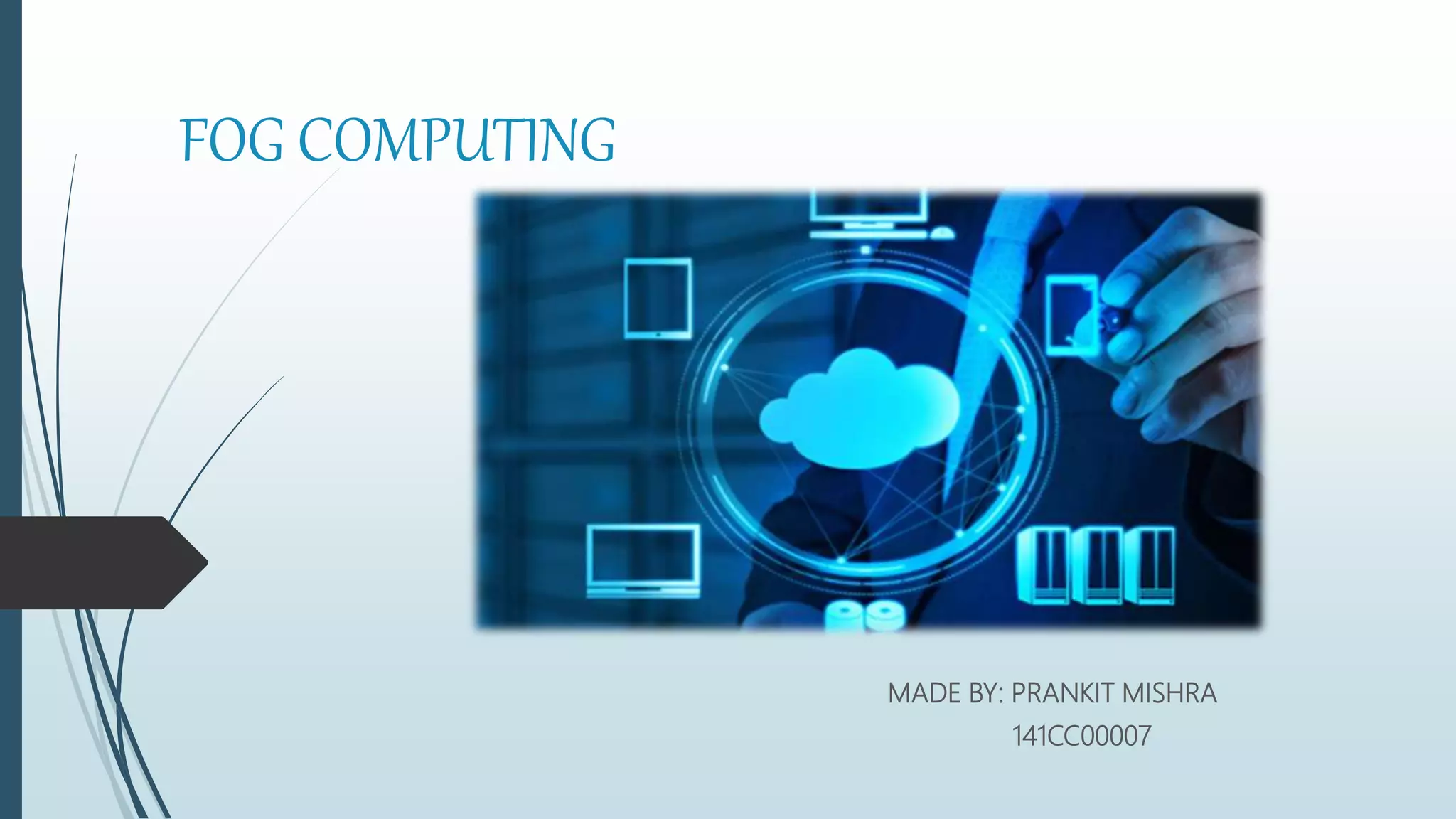 This document provides an overview of fog computing, including its origins at Cisco, its advantages over cloud computing for applications with low latency requirements like IoT, and examples of applications that could benefit like smart cities and healthcare. Fog computing processes data locally at the edge of the network rather than sending all data to the cloud, helping address issues of bandwidth constraints, network congestion, and latency for real-time applications. Security challenges also exist with protecting data and devices at the edge of the network in fog computing environments.