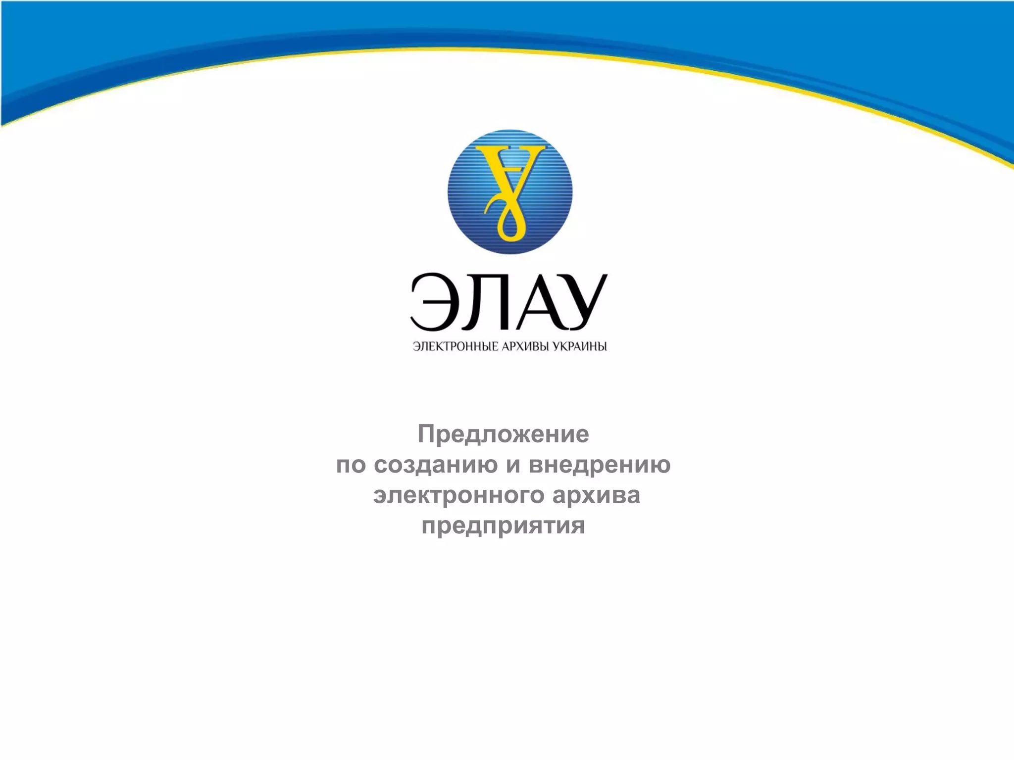 Документ представляет предложение по созданию и внедрению электронного архива предприятия, описывая услуги компании «элау» и преимущества системы. Внедрение электронного архива обеспечивает надежное хранение, доступ и безопасность электронных документов, а также автоматизированный учет. Указаны примеры реализованных проектов и преимущества сотрудничества с компанией.