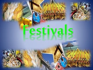 This document provides information on various dances and festivals in the Philippines. It describes the Sinulog dance performed at the famous Sinulog festival in Cebu City, which involves two steps forward and one back while moving to drum beats. It also mentions the Mazurka Boholana dance from Bohol which is performed by partnered men and women, and the Itik dance which mimics the movements of ducks. Additionally, it provides details on festivals like the Sandugo Festival in Bohol commemorating a historic treaty, and mentions various Philippine food items.