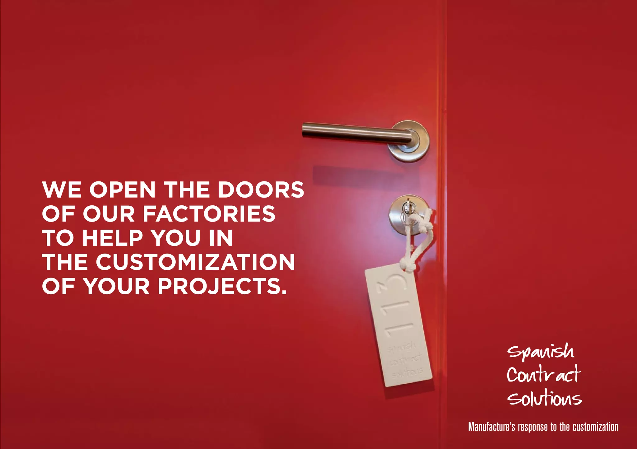 Spanish Contract Solutions offers manufacturers' services for project customization, aimed at architects, decorators, and interior designers. The initiative focuses on providing unique, high-quality solutions directly from factories to enhance client experiences and reduce costs. Their competitive advantage lies in craftsmanship and collaboration to deliver tailored project outcomes.