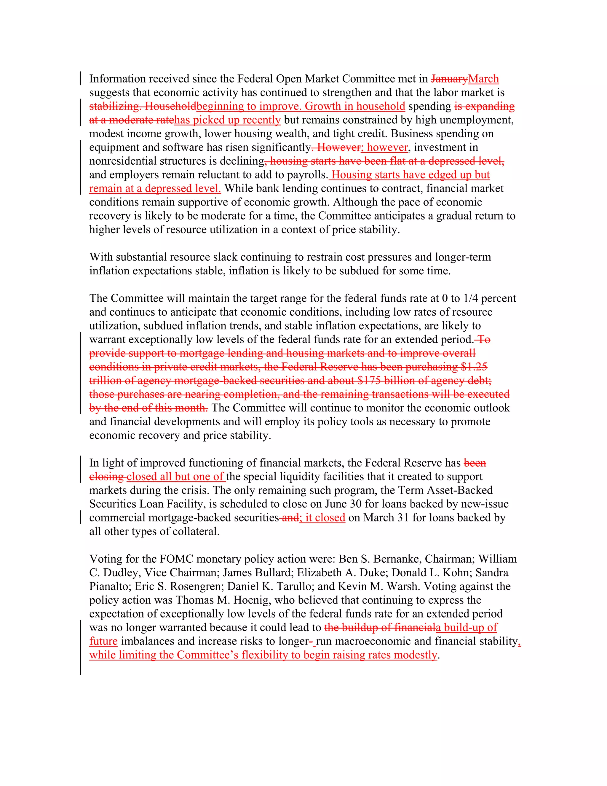1) Economic activity has continued to strengthen and the labor market is stabilizing, though unemployment remains high and income and housing wealth are constrained.