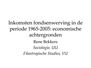 Elementen voor detoekomst De werkloosheid is nog niet gestegen, en de huizenprijzen zijn nog niet sterk gedaald. Inkomsten fondsenwerving zijn hiervan (sterk) afhankelijk, soms met een vertraging van 1 of 2 jaar Het consumentenvertrouwen is nog niet gedaald. Veranderingen in het consumentenvertrouwen werken sinds 1994 direct door in de inkomsten fondsenwerving.