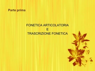 Il documento esamina la fonetica e la fonologia, distinguendo tre principali filoni di ricerca: la fonetica articolatoria, acustica e percettiva. Viene discusso l'apparato fonatorio e il suo funzionamento nella produzione dei suoni, oltre a trattare fenomeni prosodici come accento e lunghezza sillabica. Inoltre, sono fornite informazioni sui simboli IPA per la trascrizione fonetica di vocali e consonanti.