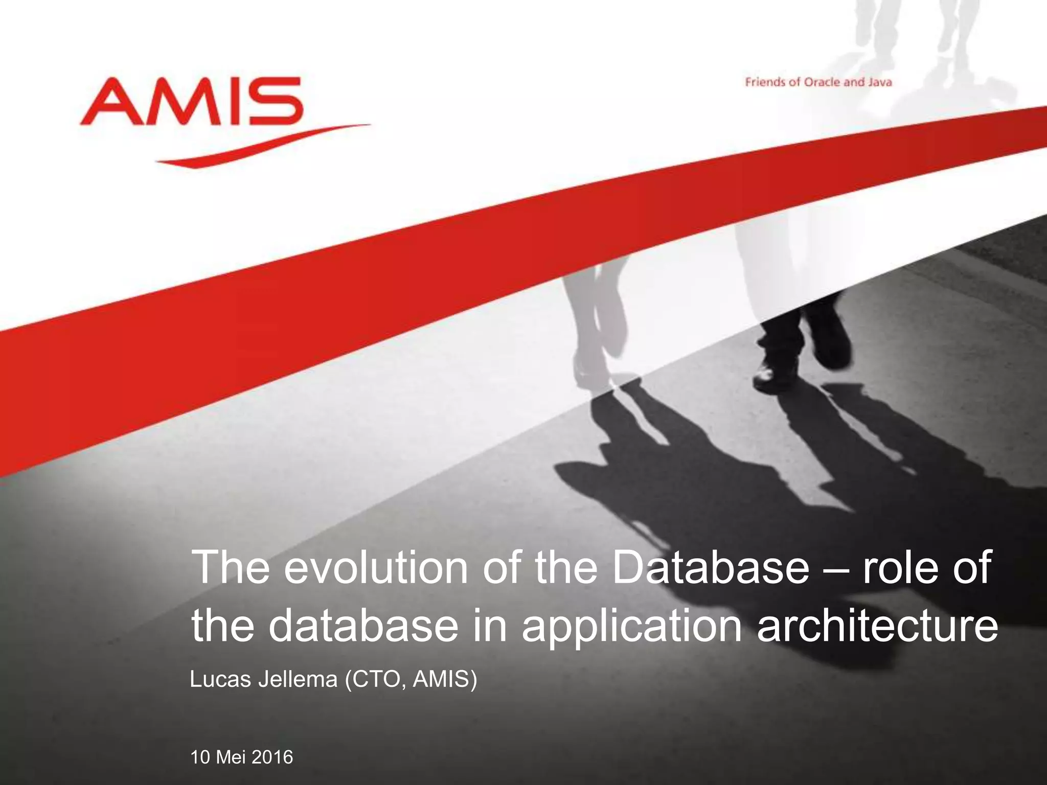 Lucas Jellema presented on the evolution of the database and its role in application architecture. Key points include: