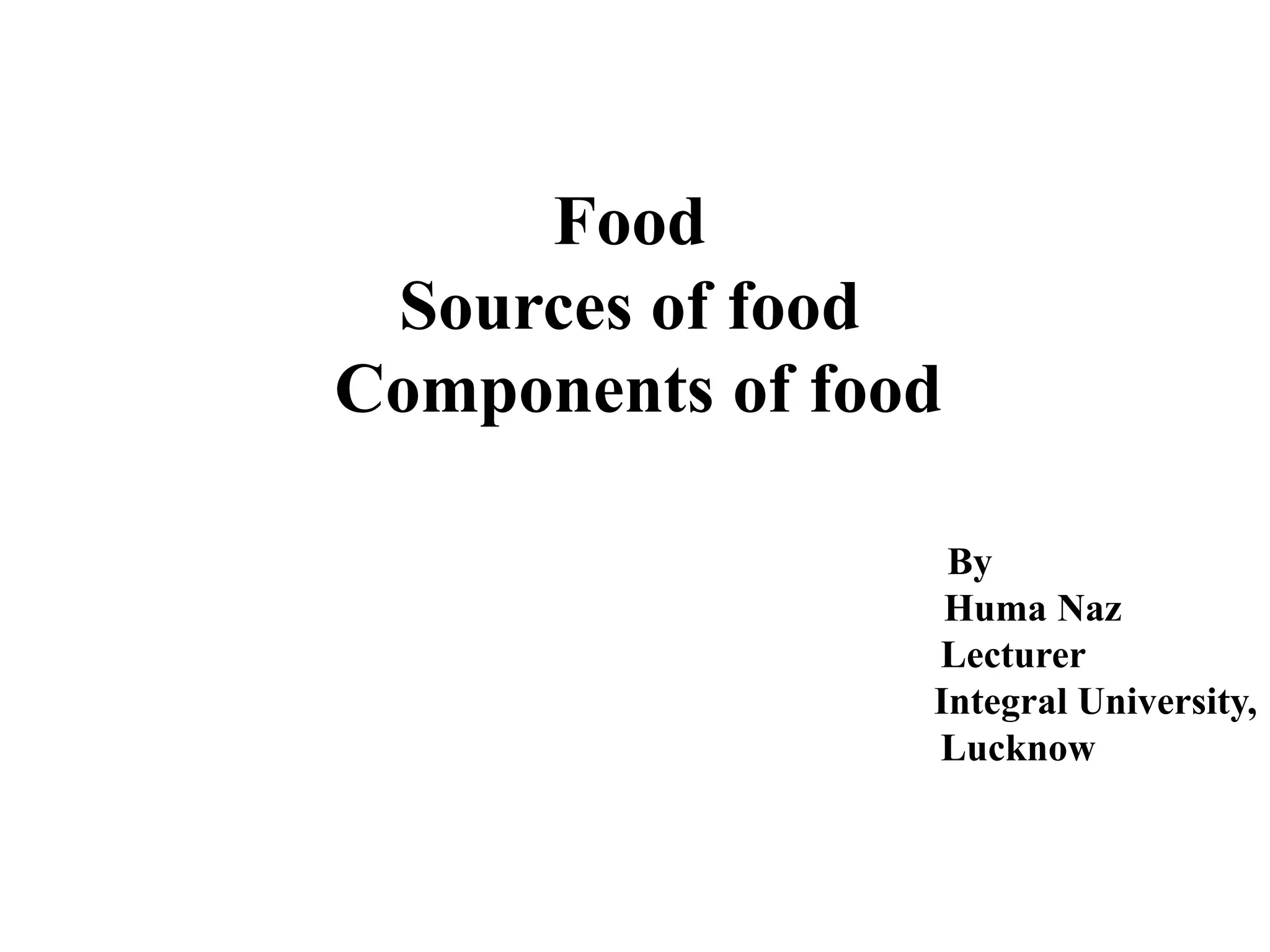 Food comes from plants and animals. Plants are the primary source of food as they produce food through photosynthesis. Humans obtain food directly from plants such as fruits, vegetables, cereals and oils, or indirectly by eating animals that consume plants. Animals are also a source of important foods like milk, eggs and meat. All foods contain important components like carbohydrates, proteins and fats that the human body needs to function properly.