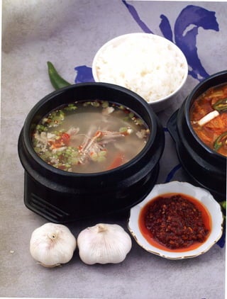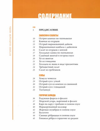 Документ представляет собой кулинарную книгу, посвященную корейской кухне, содержащую множество рецептов, включая кимчхи, различные салаты и острые супы. Также рассматриваются основные принципы кремлёвской диеты, акцентирующей внимание на ограничении углеводов, и подчеркивается важность соевого соуса в корейском кулинарном наследии. Предисловие содержит личные воспоминания и исторические ссылки на корейскую кухню в СССР.