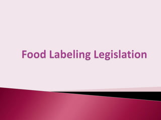The document discusses food labelling requirements. It states that labels must be in English and include the product name, ingredients list, nutrition facts, quantity, expiration date, and manufacturer information. The most important rule is that labels cannot mislead consumers. Certain claims like unauthorized health claims are prohibited.