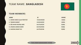 The document outlines a project on developing a food order management system, specifically for Pizza Hut, highlighting the team's members, objectives, and existing system limitations. It mentions the brand's history, quality assurance policies, and the drawbacks of the current technological setup, including inefficiencies and lack of advanced features. The proposed new system aims to improve employee management and streamline operations through enhanced software solutions.