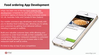Infigic is a leading food ordering app development company, offering comprehensive solutions for businesses in various regions including the US, UK, Australia, and India. The app provides a user-friendly interface with features like secure payment gateways, favorite products, and easy navigation to enhance customer experience and increase sales. With a focus on intuitive design and a robust development process, Infigic partners with clients to deliver high-quality mobile commerce applications tailored to their needs.