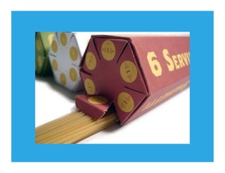 Food packaging protects food from damage, contains the food, and provides consumers with information. Packaging has evolved from natural materials like skins and leaves to modern materials like plastic, glass, and metal. Packaging allows for convenient portioning and transport of foods while providing information to consumers. Sustainable packaging considers environmental, social, and economic impacts. Recent innovations aim to reduce waste and use renewable materials. Packaging serves multiple purposes including containment, protection, marketing, and convenience. Design considers the food product, materials, usability, branding, and information communication.