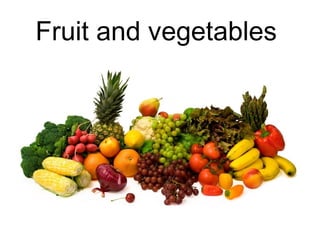 The document discusses whether various foods come from plants or animals. It identifies oranges, apples, pears, carrots, potatoes, watermelon, pineapple, bread, carrots, chocolate, pears, apples, bananas, peas, tomatoes as coming from plants. Cheese, eggs, chicken, milk, meat, fish fingers, bacon, yogurt are identified as coming from animals.