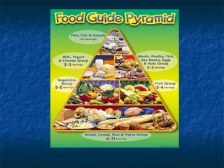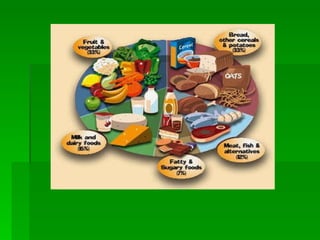 The document discusses the importance of a balanced diet for living organisms. It explains that food provides fuel for the body in the form of nutrients like carbohydrates, proteins, fats, vitamins, and minerals. These nutrients help the body grow, repair cells, provide energy, and maintain health. A balanced diet contains foods from each of the main food groups and ensures the body receives all the nutrients it needs to function properly. Maintaining a balanced diet is essential for overall health and well-being.