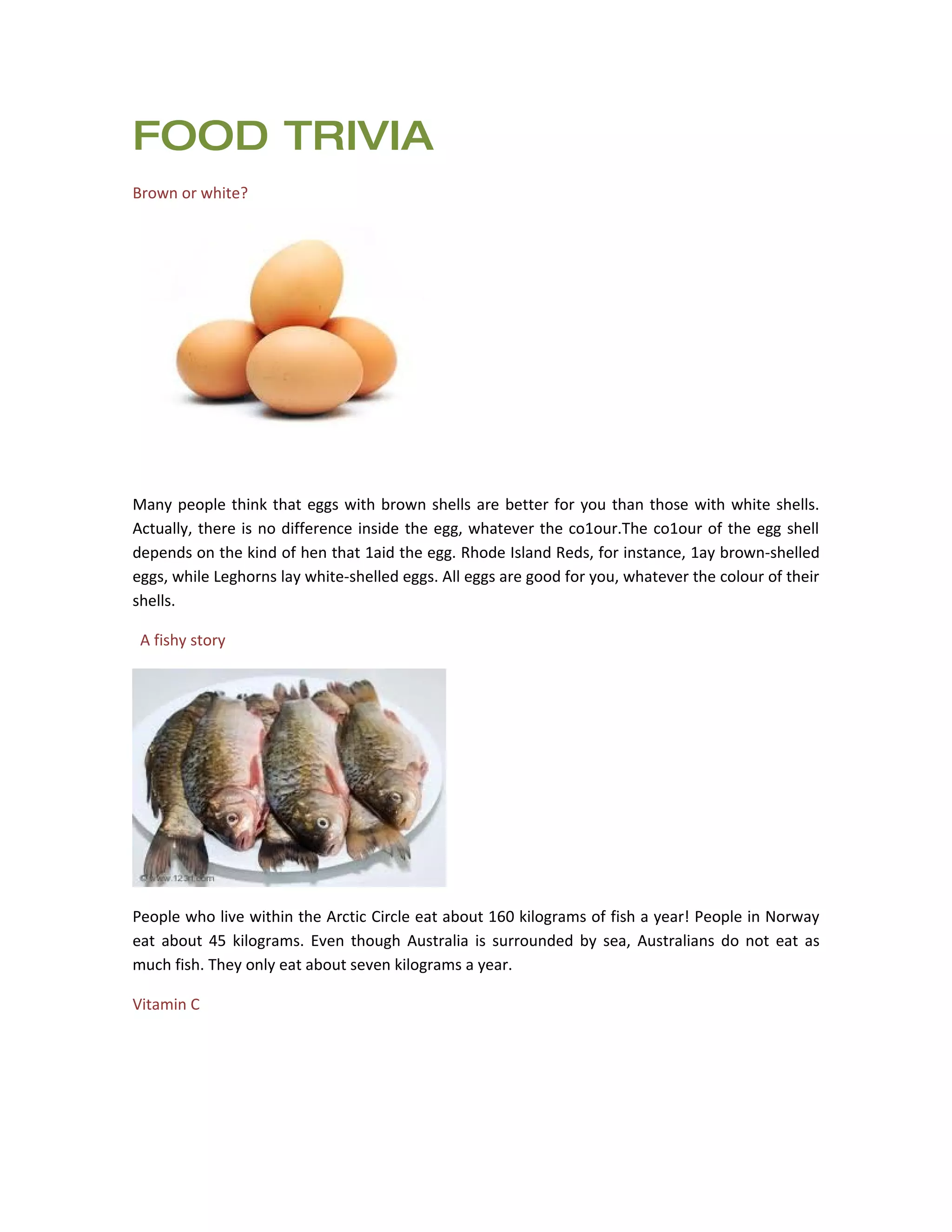 - People in Arctic Circle eat 160kg of fish per year, Norwegians eat 45kg, but Australians only eat 7kg despite being surrounded by sea.