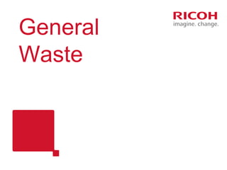 The document discusses the impact of the 'green fence' on plastic waste management, leading to increased general waste and incineration costs at Ricoh. It proposes the adoption of anaerobic digestion as a more cost-effective and environmentally friendly method for handling food waste, suggesting significant potential CO2 savings. Implementing this change could result in annual savings of approximately £590 and a reduction in environmental impact.