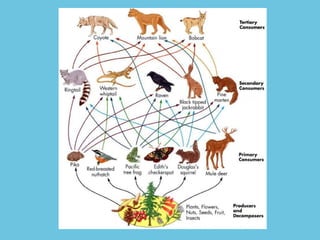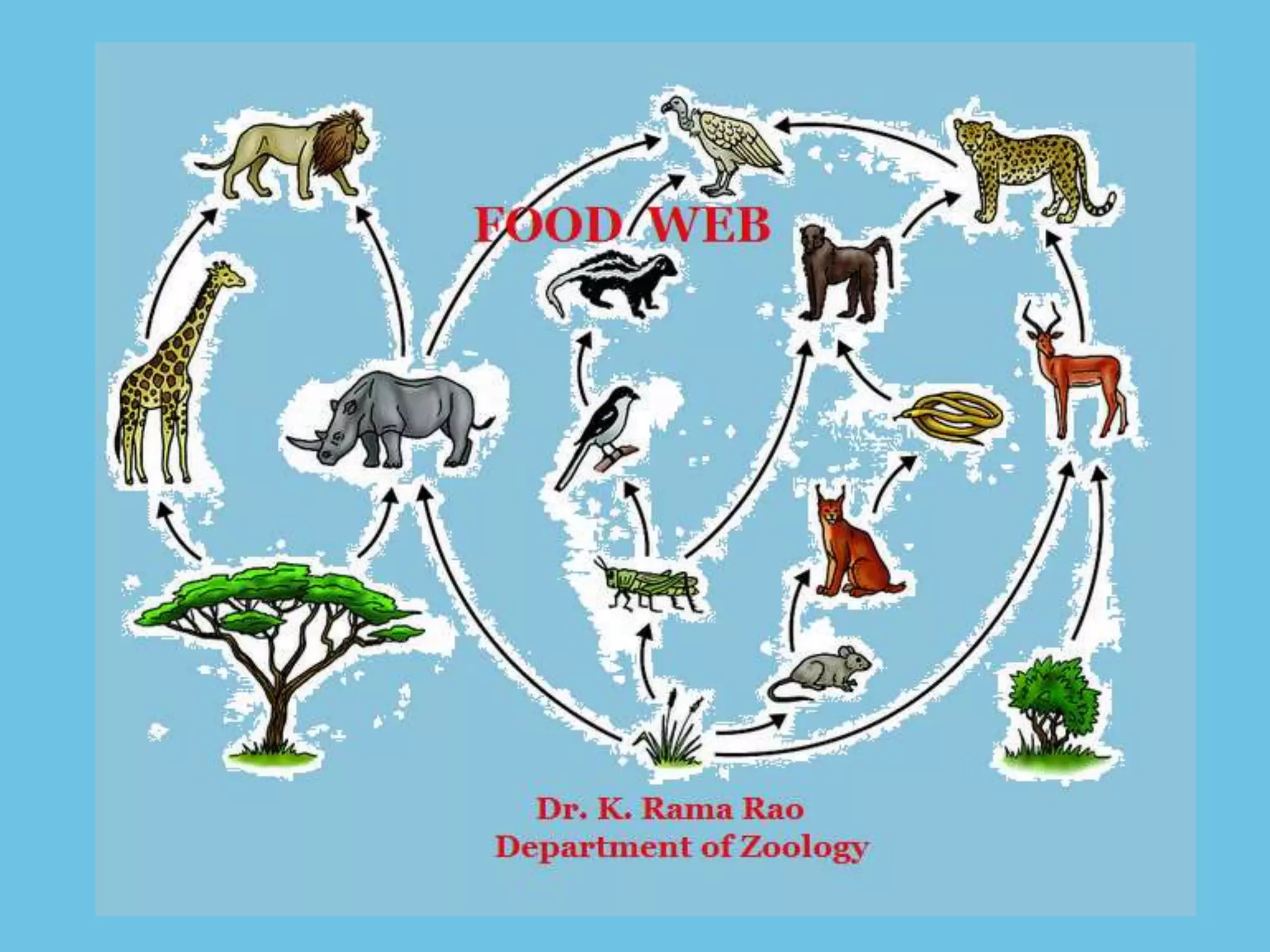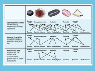 A food web represents the complex feeding relationships within an ecosystem, depicting how energy and nutrients are transferred among species across different trophic levels. It consists of interconnected food chains and can be classified into different types, such as grazing and detrital food webs, reflecting various aspects of species interactions. The primary purpose of food webs is to describe these feeding relationships and their implications for species' populations and community dynamics.
