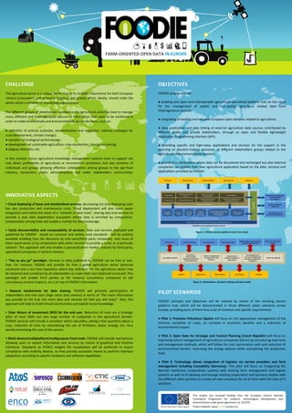 The document discusses the FOODIE project which aims to build an open and interoperable agricultural platform on the cloud to manage spatial and non-spatial agricultural data from different sources. The platform will integrate existing European open datasets, publish and link external agricultural data sources, and provide applications and services to support decision making for stakeholders. It will be demonstrated through three pilots in Spain, Czech Republic, and Germany to test precision viticulture, open data for strategic planning, and integrating logistics and farm management.