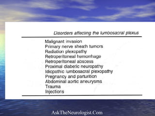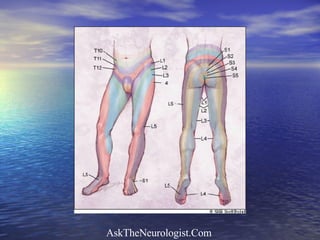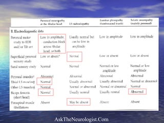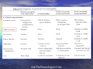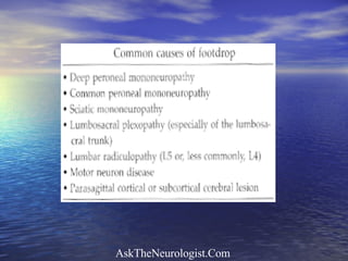 The document describes the case of a 40-year-old man presenting with right foot drop and difficulty walking. His medical history includes several episodes as a child and young adult of temporary leg paralysis without clear cause. Electrophysiology testing showed normal results inconsistent with his symptoms. His symptoms and history were inconsistent and suggestive of a non-organic or factitious disorder.