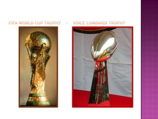 The document explores the history and development of association football (soccer) and American football, highlighting key milestones such as the establishment of FIFA in 1904 and the first World Cup in 1930. It discusses the popularity of both sports globally, their rules, and notable events such as the Super Bowl and World Cup. Additionally, it mentions significant figures like Pelé and Diego Maradona, and the growth of women's football.