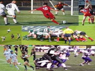 This document provides a history of various forms of football and their origins. It discusses early ball games played in ancient cultures like China, Greece, and Rome. Modern football codes developed from early folk football games played in Europe, particularly England, between medieval towns. The rules of these mob football games were not standardized. Early references to organized ball games in Britain date to the 9th century. By the late Middle Ages, annual Shrovetide football matches had become popular in much of Europe. The first codified sets of rules for football games emerged in England in the late 18th century, spreading with the British Empire, and many modern codes of football worldwide have roots tracing back to these early British games.
