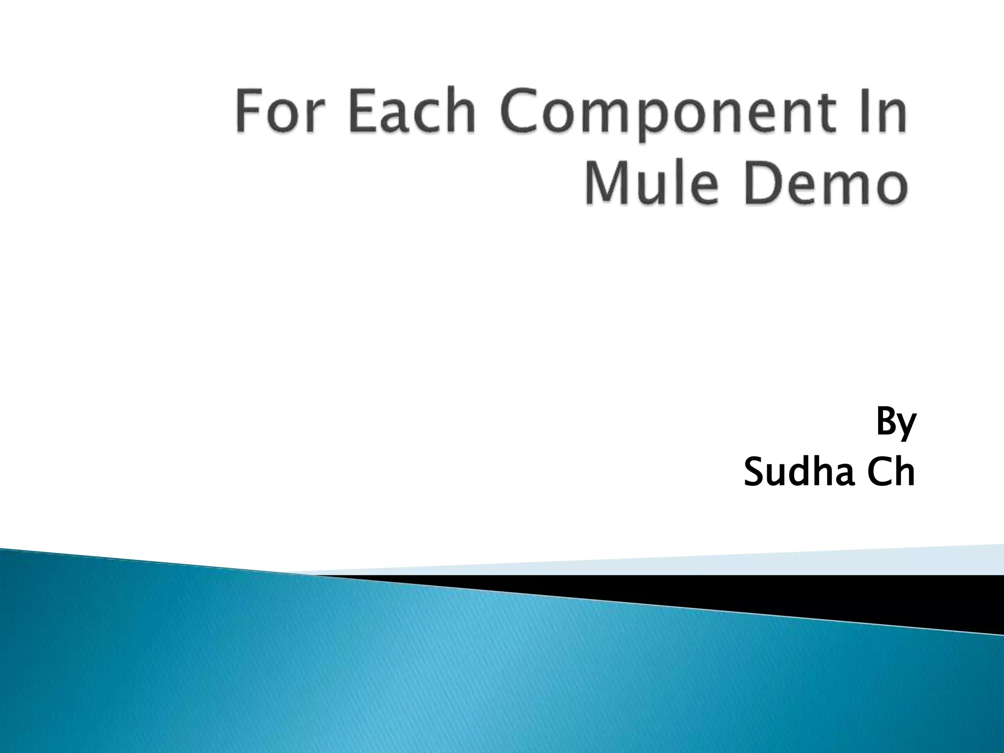 The document discusses using the ForEach component in Mule applications. The ForEach component splits a collection into elements and processes them iteratively through embedded processors. It then returns the original message to the flow. The example shows a flow that uses a ForEach component to iterate over results from a database query and log each element.