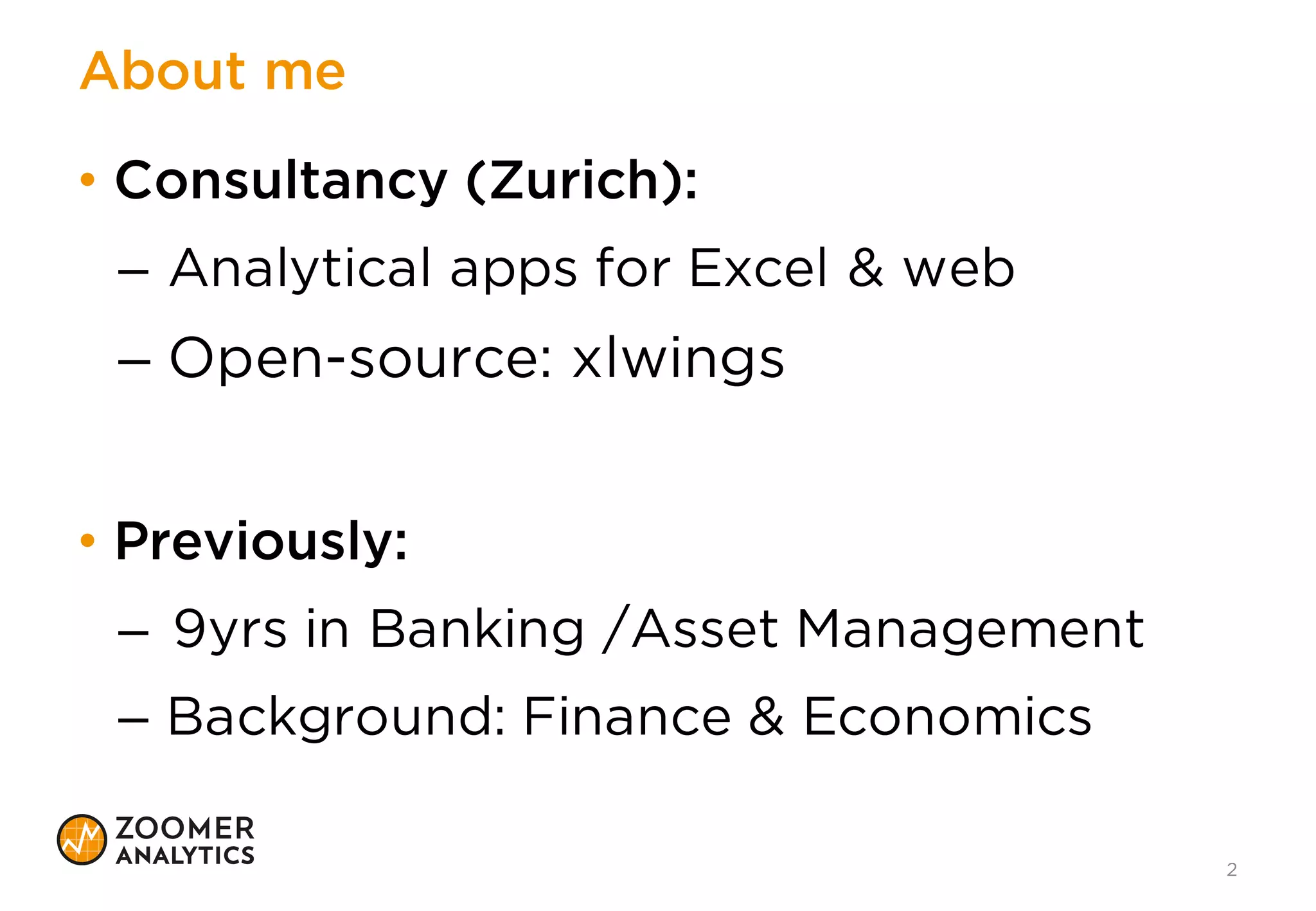 The document discusses xlwings, an open-source Python library designed for integrating Python with Excel, showcased at the Python Quants Conference in New York City. It highlights xlwings' features, including easy installation, cross-platform compatibility, and support for user-defined functions, along with practical applications such as Monte Carlo simulations and correlation analysis. The author, with a background in finance and asset management, emphasizes xlwings' capabilities for analytical web applications and data manipulation.