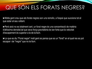 Lo que es diu "Forat negre" molt gent es pensa que es un "forat" en el qual res es pot