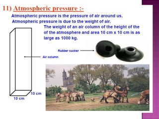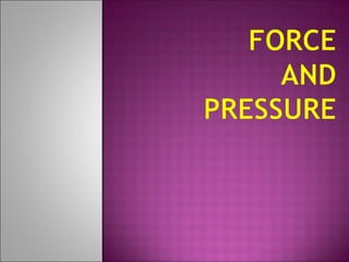 Forces can be pushes, pulls, or a combination of both. A force is any interaction between two objects that causes a change in motion or shape. There are two main types of forces - contact forces that act when objects touch, and non-contact forces that act over a distance like magnetic or gravitational forces. Pressure is the amount of force applied over a given area, and depends on both the force and the contact area. Applying force over a smaller area results in greater pressure.