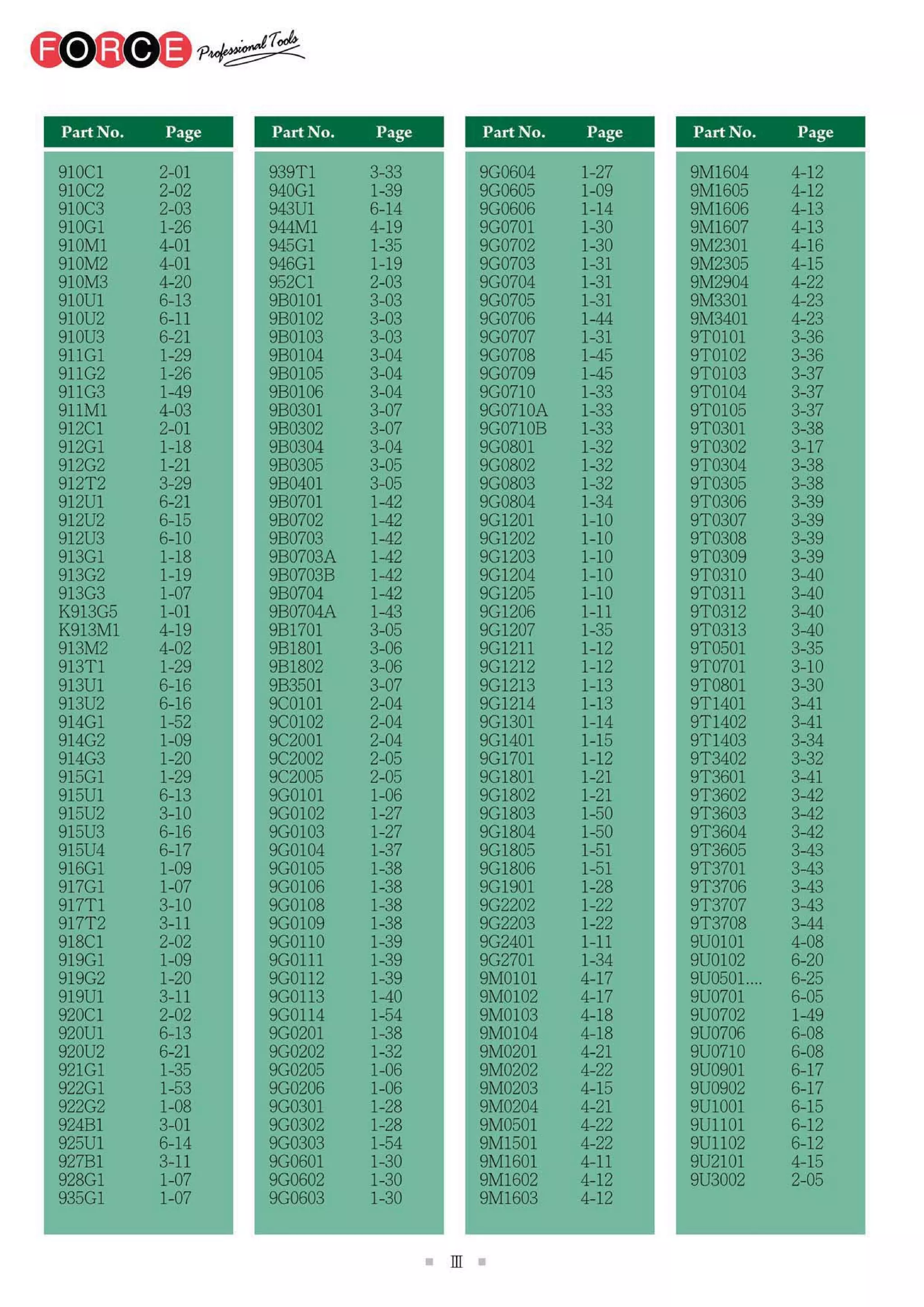 This document provides information on various tools for working on engines, including spark plug tools, timing tools, and camshaft locking tools. It lists specific tools like spark plug thread chasers, spark plug sockets, and camshaft locking tools for various vehicle models. It also includes multi-piece timing and camshaft locking tool kits for working on engines from manufacturers like BMW, Ford, Renault, and Volkswagen. Specifications like dimensions and weights are provided for each individual tool or tool set.