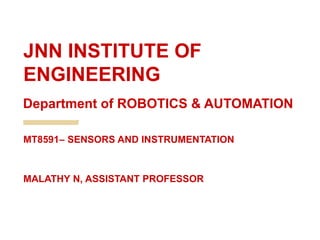 The document provides an overview of motion sensors in engineering, focusing on various types such as passive infrared, ultrasonic, and microwave sensors. It explains the principles of operation, applications, and advantages of each sensor type while detailing the construction and operation of devices such as potentiometers, resolvers, and encoders. Applications highlighted include security systems, intruder alarms, and automation in home and industrial settings.