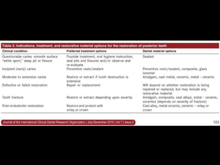 This document discusses various biomechanical considerations that are important for restorative dentistry. It covers topics like the forces acting on teeth, stress patterns on different types of teeth, weak areas of teeth, and mechanical properties of dental materials. It emphasizes the importance of understanding stress transfer and how restorations can impact this. It also addresses obtaining resistance form for tooth structures and occlusal considerations when restoring teeth. The overall goal is to design restorations that can withstand biting forces and minimize stress on remaining tooth structures.