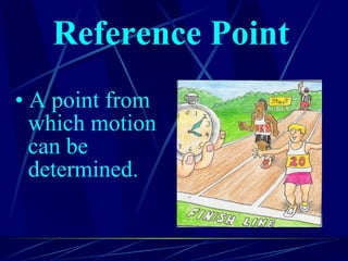 This document defines key concepts related to motion including motion, reference point, frame of reference, speed, force, balanced forces, and unbalanced forces. Motion is defined as an object changing position over time compared to a reference point. Speed is the distance an object travels due to force over time. Balanced forces are equal and opposite forces resulting in no net force and no change in motion, while unbalanced forces are unequal forces resulting in a net force and change in speed or direction.