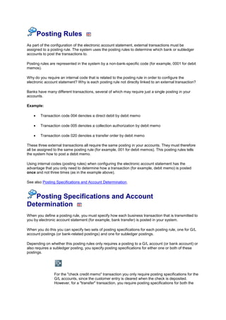 The document discusses how to configure foreign currency transactions in SAP. It explains that you can define account symbols to determine which general ledger accounts transactions in different currencies will post to. It also discusses how to assign external transaction codes from bank statements to internal posting rules to trigger the correct postings in SAP. Finally, it provides the recommended sequence for configuring foreign currency transaction processing which includes defining transaction types, assigning banks and transactions, and setting up posting rules and specifications.