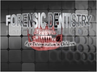 Forensic odontology involves the examination and analysis of dental evidence for use in legal proceedings. It can be used to identify unknown remains by comparing dental records, determine factors like age, sex, and ethnicity, and analyze bite marks and other dental evidence found at crime scenes. Several historical cases demonstrated early uses of dental identification. Methods for estimating age include assessing tooth development, emergence, and calcification stages in children and adolescents, and evaluating third molar development in older individuals. Techniques like Demirjian's method provide scoring systems for dental calcification on radiographs to estimate age. Forensic odontologists play an important role in investigations and can present expert testimony in court.
