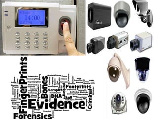 Forensic science plays an important role in daily life from the moment one's day begins through attendance tracking, security systems that monitor homes and banks, and ATM and social media activities that can reveal personal information. Fingerprints, DNA, marks on weapons, and crime scene evidence can help solve criminal cases while also exonerating the falsely accused. Forensic science techniques began through careful observation and now include advanced methods like DNA testing and UV screening to analyze tiny clues and evidence with great precision.
