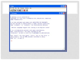 The document provides instructions for creating a forest plot in R to display results from multiple randomized controlled trials. It explains that a forest plot is useful for meta-analyses to show outcome data from several RCTs studies that have been entered into R as separate matrices and combined into a list. The code examples demonstrate how to define the matrices for each trial's data and compile them into a list for analysis and visualization in a forest plot.