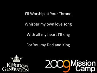 The document is a song about worshipping God forever. It expresses devotion to God as the singer's father and king. It discusses living each day to bring God joy and being with Him for eternity. It acknowledges God's unconditional love and how He showed this through Jesus' sacrifice on the cross. The song repeats that the singer will always worship and sing to God, and be with Him forever.