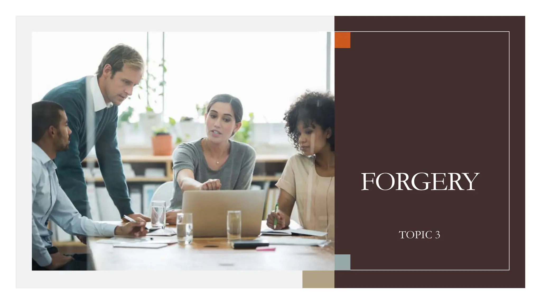 Forgery involves imitating signatures or documents. There are three main types of forgery: simulated forgery which copies signatures freehand, traced forgery which uses tracing methods to exactly replicate signatures, and simple forgery which uses fake names without copying a model. Traced forgeries often show defects like irregular line quality from hesitation and changes in pen pressure. Simulated forgeries may also contain indications of fraud like tremors, blunt letter forms, and lack of spontaneity. Document alterations like erasures, additions, or substitutions can also be used to change meanings fraudulently. Careful examination of writing characteristics is needed to determine the authenticity of signatures and documents.