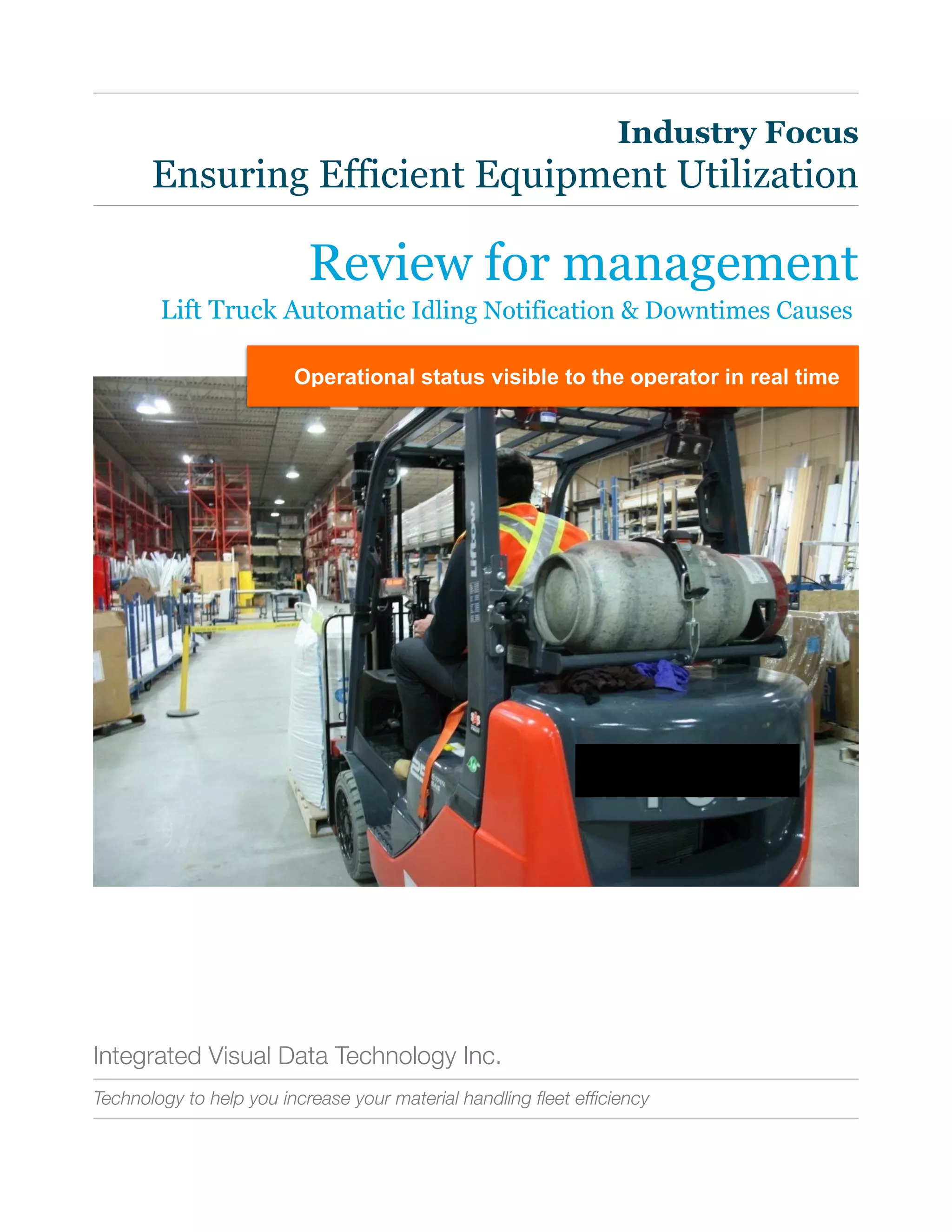 The document discusses the importance of optimizing lift truck fleet efficiency by monitoring vehicle utilization, idling times, and downtimes in real time. It emphasizes the need for individual operator accountability to manage the significant costs associated with idle and inefficient equipment. By using integrated visual data technologies and software tools, companies can improve operational performance and reduce unnecessary expenses related to material handling equipment.