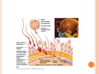 The document summarizes the human reproductive system and process of reproduction. It describes that males have testes that produce sperm and a penis, while females have ovaries that produce eggs and a uterus. Fertilization occurs when a sperm penetrates an egg in the female's ovaries or fallopian tubes. The fertilized egg then implants in the uterus and develops into a fetus over 9 months of pregnancy before birth. Key parts of both the male and female reproductive systems and stages of fertilization, pregnancy, and birth are outlined.